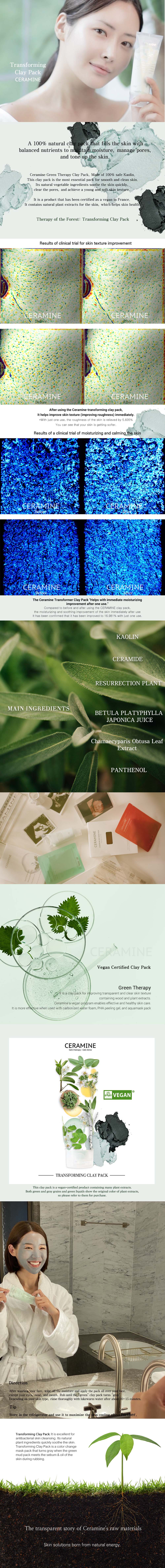 CERAMINE green therapy mud pack, made of 100% French natural mud. It manages from the rough skin texture which arises from the daily stress to the soft and shiny skin with cleared pores, reduce pores and skin waste with calming and tone up effect.